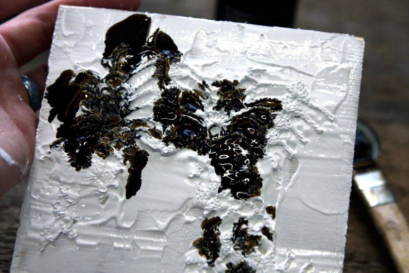 Термостойкий лак не всегда покупают в магазине. Его можно приготовить собственноручно из определённых ингредиентов. Для этого понадобится древесный дёготь высшего сорта и порошок медного купороса. Сначала необходимо разогреть дёготь, который нельзя доводить до закипания. Далее в него нужно засыпать порошок и тщательно, аккуратно перемешать. Должна получиться однородная масса, которая будет хорошо наноситься на поверхность камня.