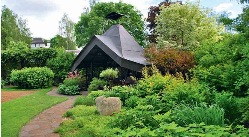 Под зону отдыха лучше отвести тенистый участок неподалёку от дома. Желательно, чтобы рядом был вывод воды. По периметру беседки высаживают вьющиеся ампельные растения.