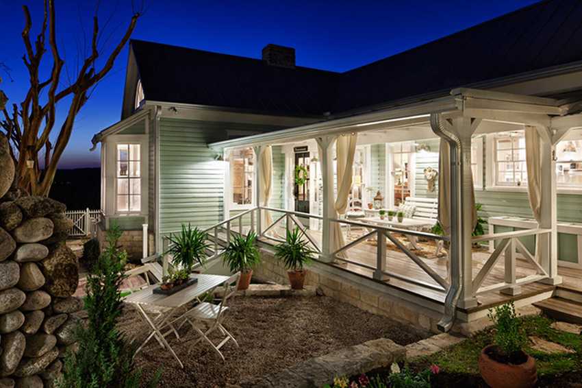 Веранда представляет собой полноценную пристройку с фундаментом, стенами, окнами и крышей, которая может быть встроенной в дом сразу при возведении или же быть пристроенной как со стороны главного входа, так и с обратной стороны дома с выходом в сад или двор.