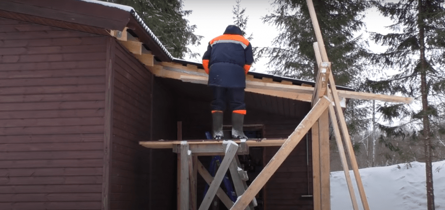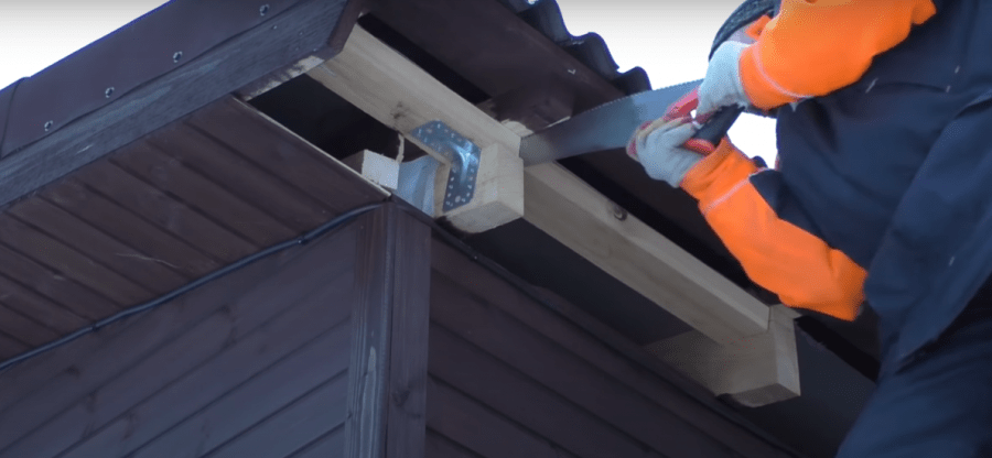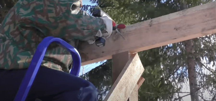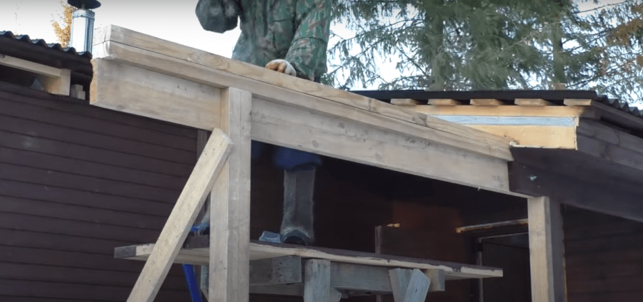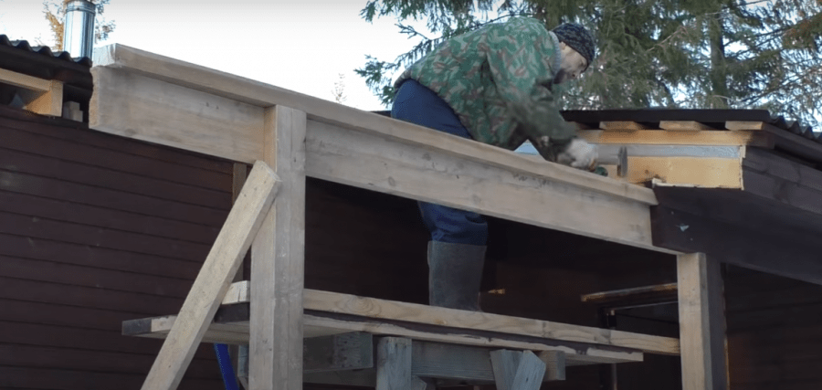 - Делается односкатная крыша, внизу крыше должна спускаться, на 500 мм ниже верхних брусков, чтоб получился скат.