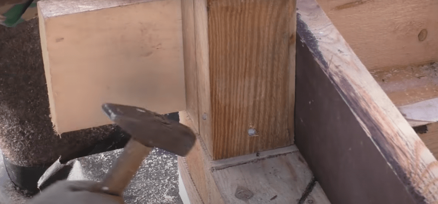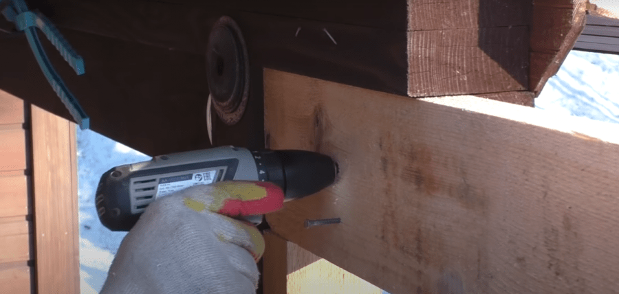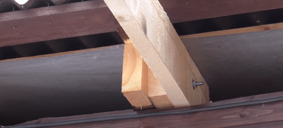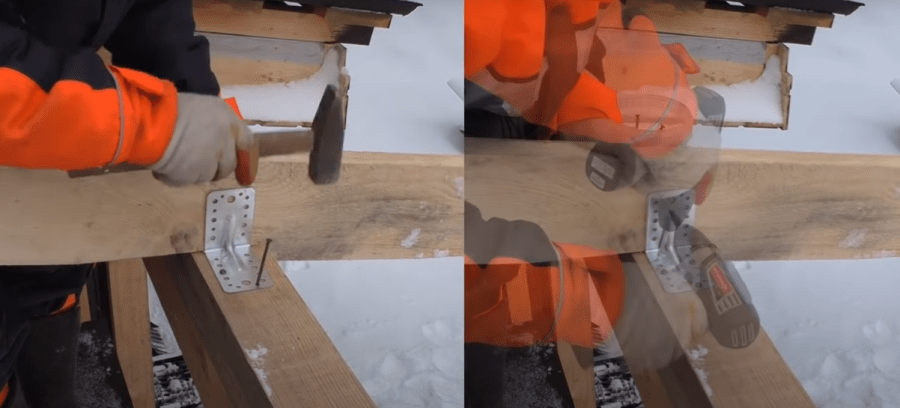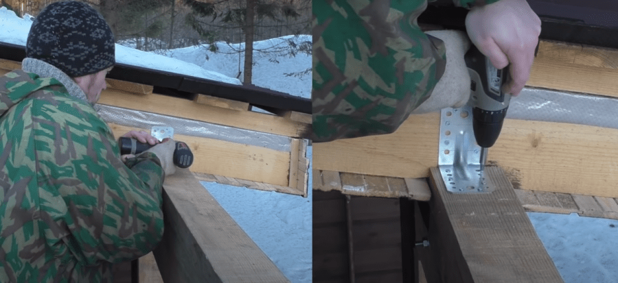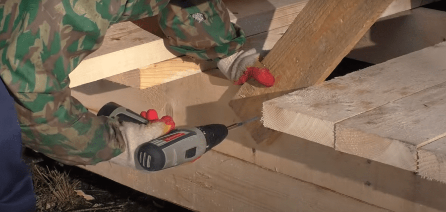 - Опорные брусья крепятся саморезами или оцинкованными гвоздями.