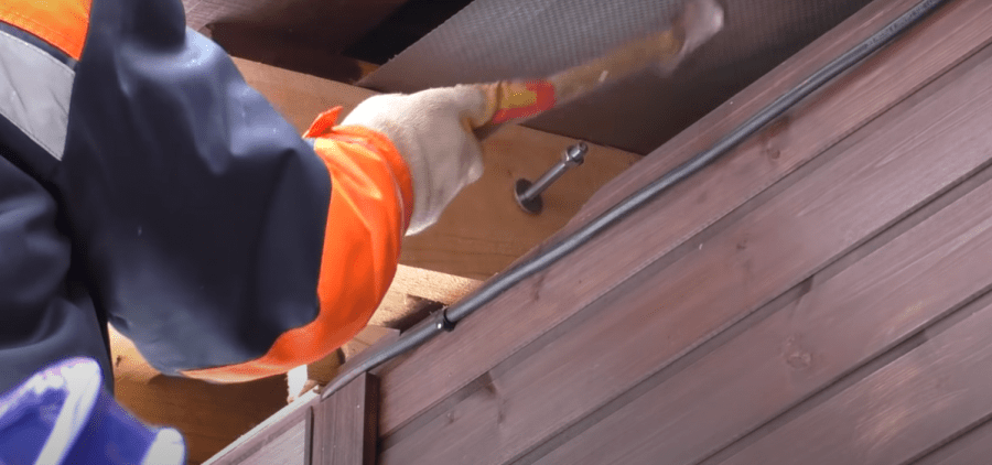 - Выполняется настил крыши выбранным материалом. При любой конструкции обязательна гидроизоляция шва между кровлей и стеной дома. Желательно также устроить отвод воды и так называемый «дождевой фартук».