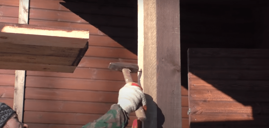 На видео «Терраса своими руками» показано, как крепятся стойки и балки: