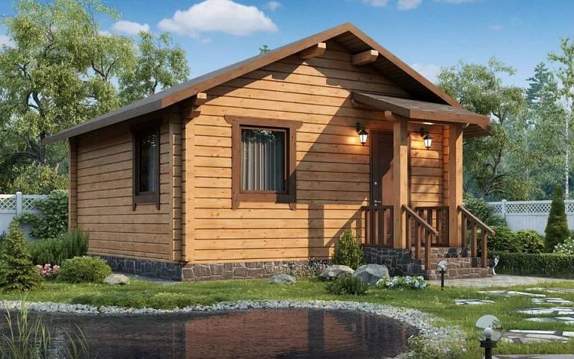Брусовая баня с крыльцом у искусственного озераИсточник grounde.ru