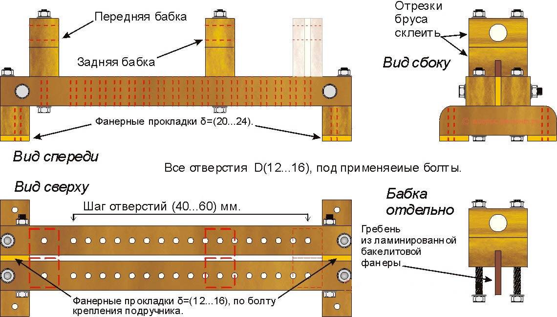 - Рабочая поверхность. Для нее используют твердую древесину, чтобы увеличить срок эксплуатации приспособления. Толщина должна быть не менее 6 см.