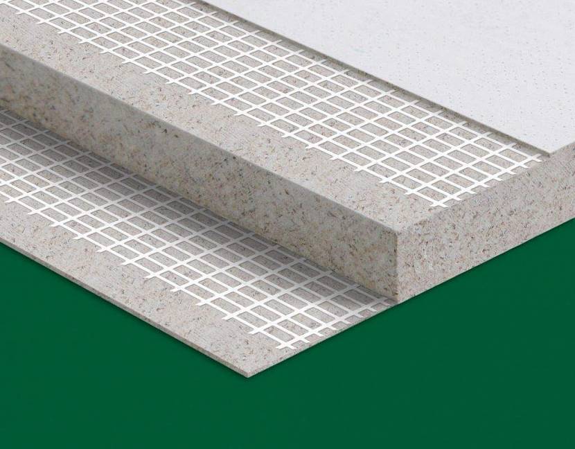 Гипсоволокнистый. В гипс добавляются целлюлозные волокна. Такие панели используют для установки различных напольных покрытий, могут использоваться снаружи зданий, а также в помещениях с постоянной высокой влагой.