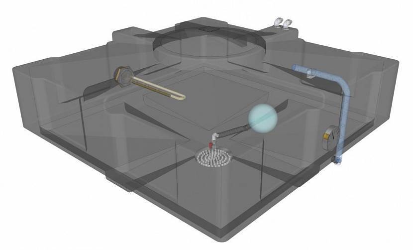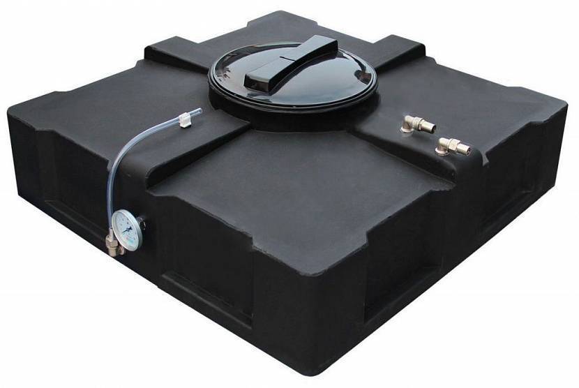 Установить сверху бак-крышу. Он выполнен в форме квадрата 115 на 115 см. Его емкость 200 л.
