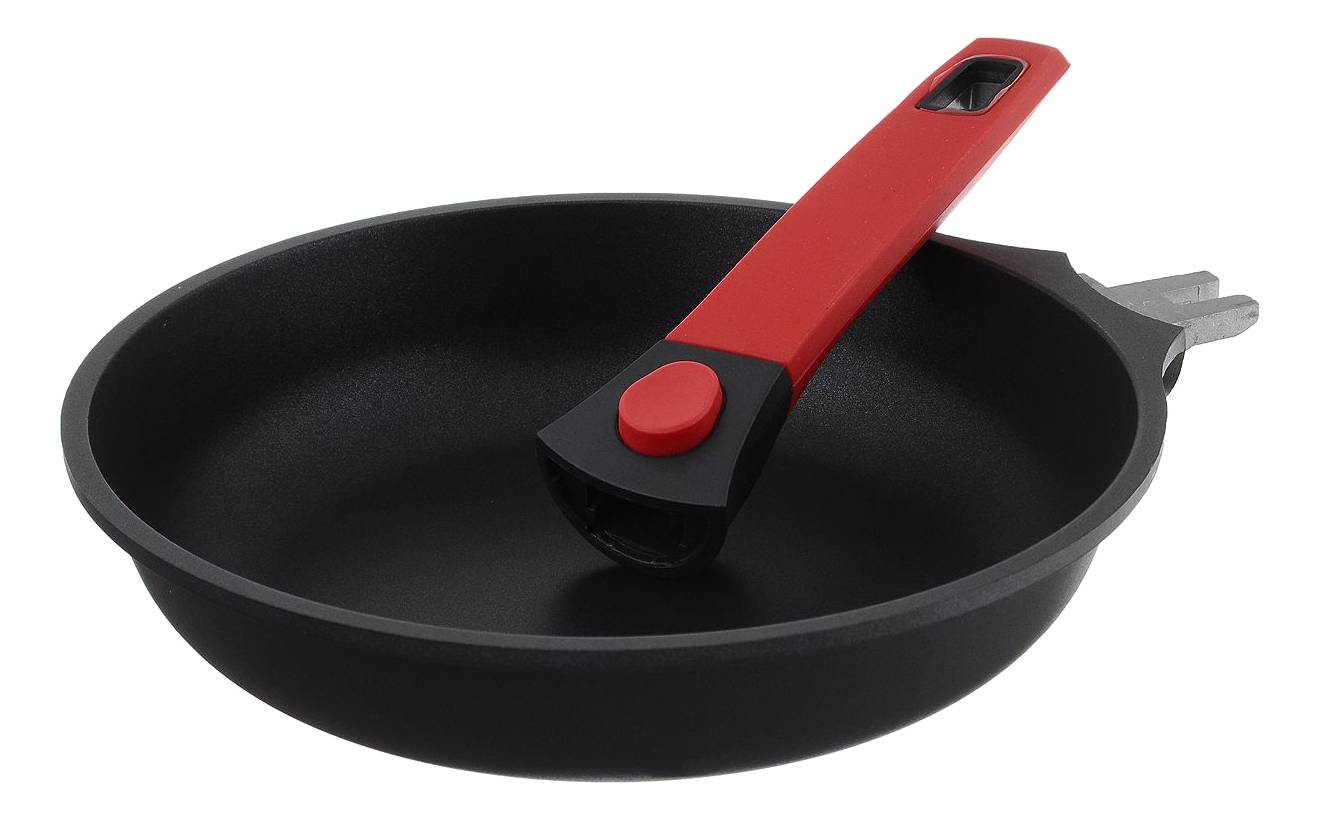 - съемная ручка, которая прикручивается. Благодаря этому свойству утварь можно использовать в духовке и мыть даже в самой компактной посудомойке;