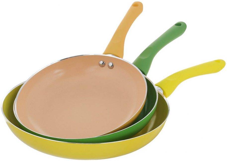 На многих современных сковородках присутствует антипригарное покрытие. Оно может быть разного типа, перечислим основные: