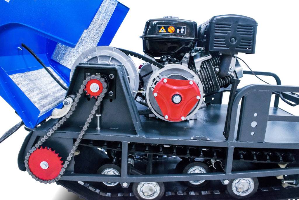 Агрегат может развивать максимальную скорость 12 км в час. Допускается использовать прицеп, весом до 650 кг. Ширина колеи – от 45 до 70 сантиметров. Оснащен бензиновым четырехтактным двигателем Honda GX270, объемом 270 сантиметров кубических. Мощность – 9,4 лошадиных силы. В час мотор расходует около 320 граммов топлива. Коробка передач механическая (4 скорости вперед и 2 назад), есть реверс.