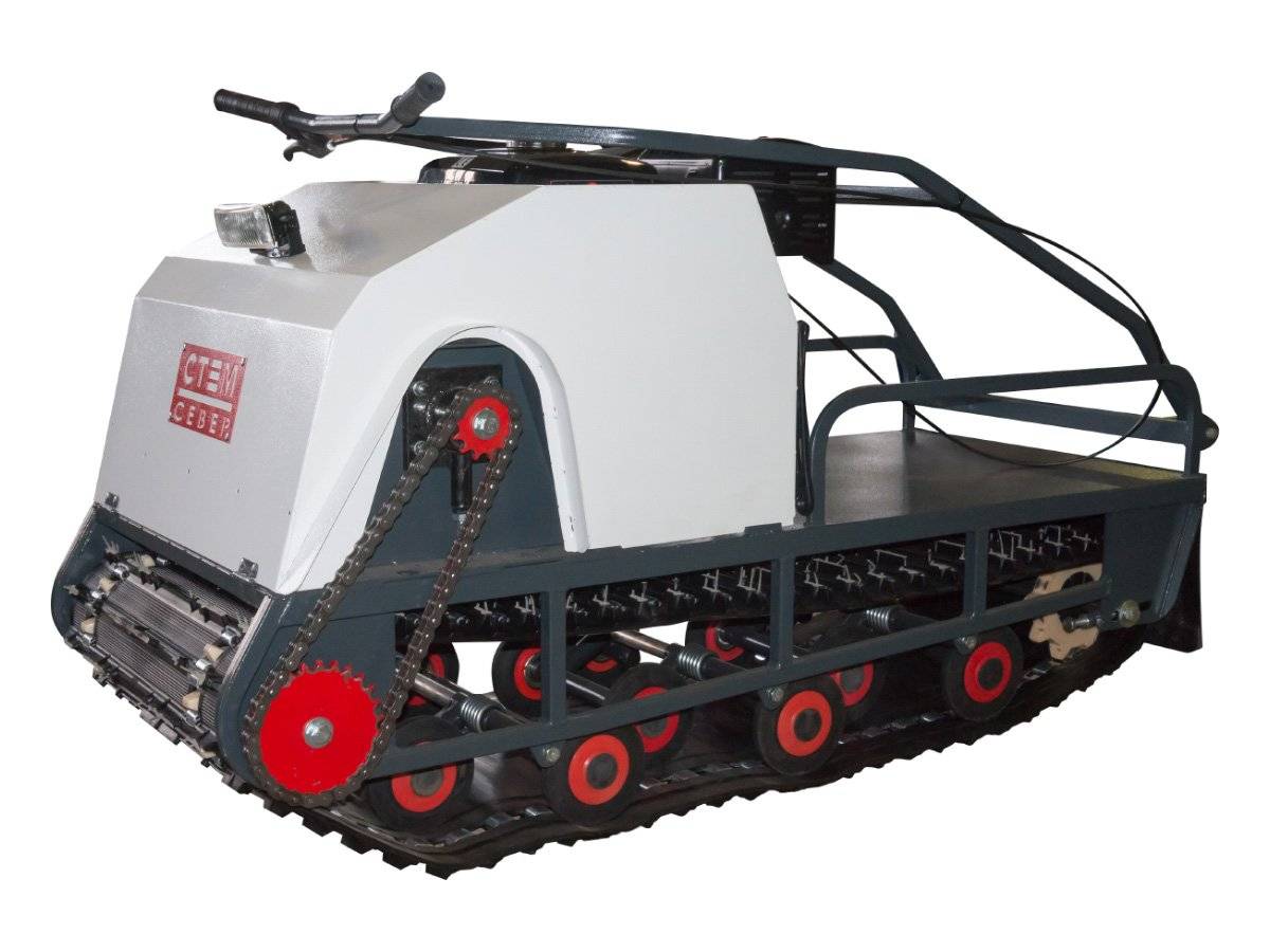 Мощный внедорожник-тяжеловес российского производства одновременно тянет груз с суммарной массой до 700 кг, в том числе, и по самой труднопроходимой местности. Ширина гусениц составляет 55 см. Они оснащены ПНД-ламелями или грунтозацепами из высокопрочной стали. Это позволяет снегобуксировщику без проблем проходить даже по обледенелой или сильно занесенной местности со значительным числом препятствий. Однако, плата за высокий уровень проходимости — большая масса, что снижает маневренность изделия.