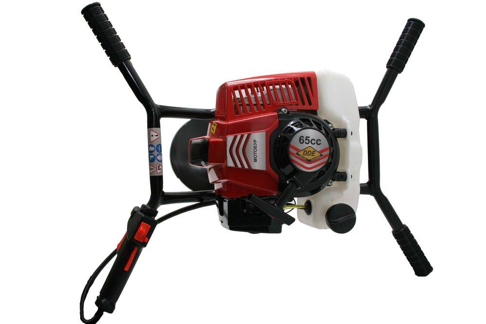 Профессиональный мотобур DDE GD-65-300 оснащен бензиновым двигателем, развивающим мощность до 3.2 лошадиных сил. Успешно справляется даже с твердым, каменистым и сильно промерзшим грунтом. Двигатель оснащен системой защиты от случайного пуска.