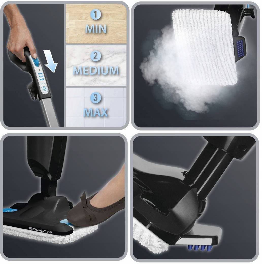 Пар, раскаленный до 140 °С позволяет удалять присохшие загрязнения, а заодно уничтожает бактерии, вирусы и пылевых клещей. Поворачивающийся на 360° блок и шнур длиной 5 м позволяют швабре легко проникать во все уголки, а телескопическая ручка – настраивать высоту агрегата для более удобного использования.