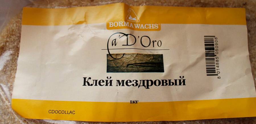 Это очередной вид клея животного происхождения для выполнения тонких работ. Он стоит дешевле рыбного. Его получают из мездры — обрезков и изнанки невыделанной кожи.