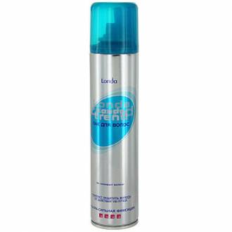 Londa Trend защита от УФ-лучей ультра-сильная фиксация280 (за флакон 250 мл) Как заявляет сам производитель, лак для волос Londa Trend призван не только надежно закреплять укладку, позволяя ей надолго сохранить красоту, но и придавать волосам блеск, и защищать их от вредного воздействия ультрафиолета. В линейку вошли средства разной степени фиксации – данный лак имеет самую сильную, обозначенную на флаконе четырьмя красными квадратиками. Представлен в одном объеме – 250 мл. Такой лак удобно распыляется, быстро высыхает, не склеивает и не утяжеляет волосы и помогает им иметь ухоженный вид даже после расчесывания. Держится отлично, не оставляет после себя следы в виде сухих белых хлопьев, легко смывается обычным шампунем. Основные плюсы: