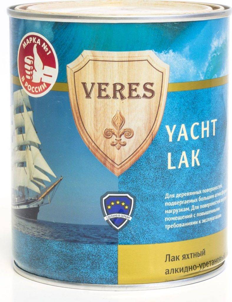 Алкидный. Основой для создания выступают органические соединения. Наиболее популярный — Уайт спирит. Группа пользуется повышенным спросом за счет своей низкой стоимости. В связи с этим характеризуется высокими показателями токсичности, противопоказано использование дома. Лак содержит в себе много толуола, имеет тяжелый и резкий запах. Высыхая, испаряет толуол и ксилол Эксплуатация сопровождается выделением летучих соединений. В защиту алкидного состава следует упомянуть высокую прочность образованного им слоя. Имеет высокие показатели влагостойкости, резкие перепады температур не наносят вреда. Рекомендован для наружных работ. При незначительной механической нагрузке выстоит 5 лет. Отсутствие трения значительно увеличивает срок эксплуатации. В связи с этим алкидный яхтный лак используют на крышах, ограждениях и других конструкциях, отдаленных от жилых домов.