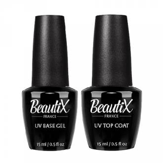 База для гель-лака Beautix UV Base950 База премиальной французской марки Beautix имеет удобную качественную кисточку, широкую, плоскую и упругую, которая позволяет быстро и аккуратно покрыть ноготь средством. Производитель обещает, что с этой основой цветной гель-лак продержится минимум две недели. Объем бутылочки — 15 мл. Консистенция у базы довольно жидкая, и для выравнивания проблемных ногтей она может не подойти. Для ее полимеризации в УФ-лампе понадобится примерно пара минут, а в LED-лампе — 30 секунд. Основа не отслаивается, дарит гель-лакам отменную стойкость, при сушке не печет и не доставляет других дискомфортных ощущений. Основные плюсы: