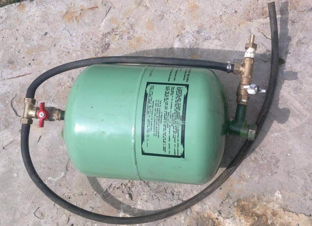 - Через приемный штуцер пистолет посредством шланга соединяется с компрессором