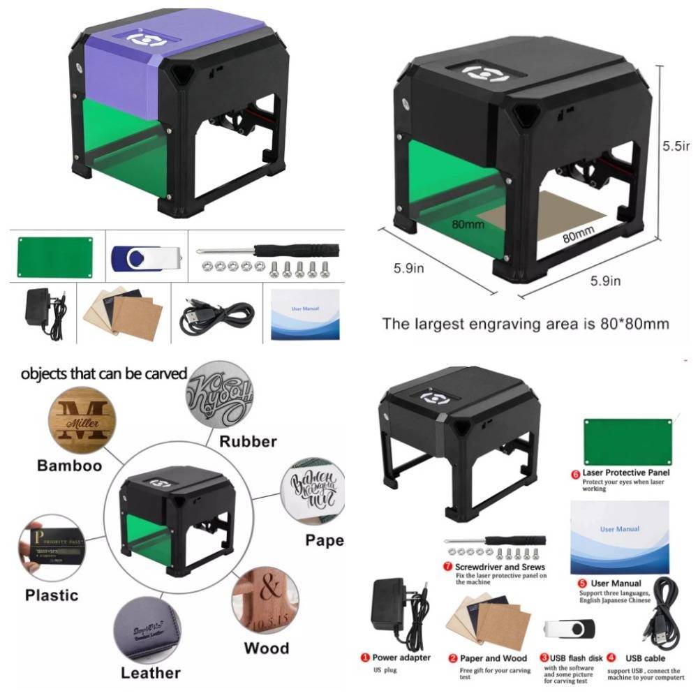 Автоматический высокоскоростной гравер с лазером мощностью 3000 МВт. Этого показателя хватает для комфортной работы по дереву, картону, коже и полимерам. Аппарат изготовлен из алюминия и высокопрочного АБС пластика. Обеспечивает нанесение гравировки с точностью 0,01 мм на глубину до 1 мм.