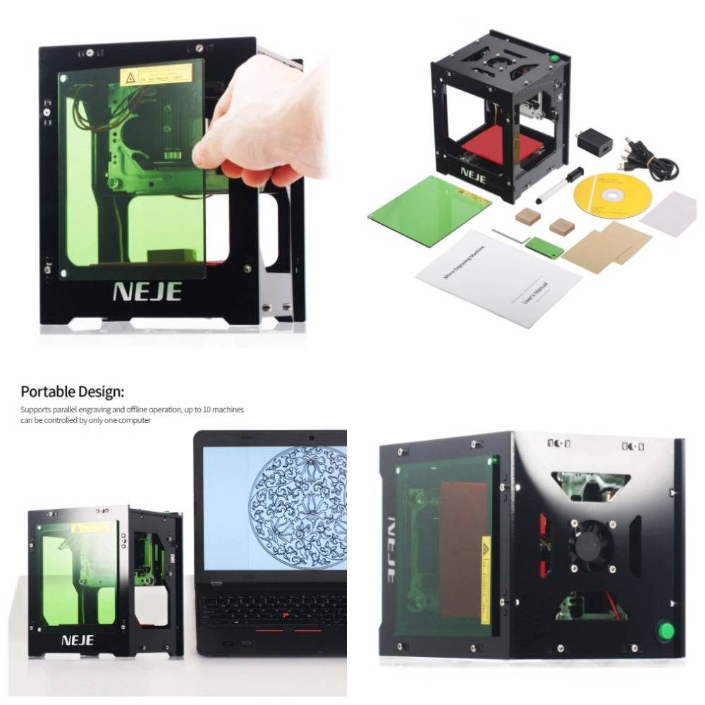 Хороший лазерный гравер с возможностью использования форматов bmp при jpg создании макета. Для работы устройству необходим стандартный USB адаптер или мобильный источник питания. Приложение NEJE Scanner помогает автоматически преобразовывать любые картинки, подготавливая схему для дальнейшей гравировки на предметах.