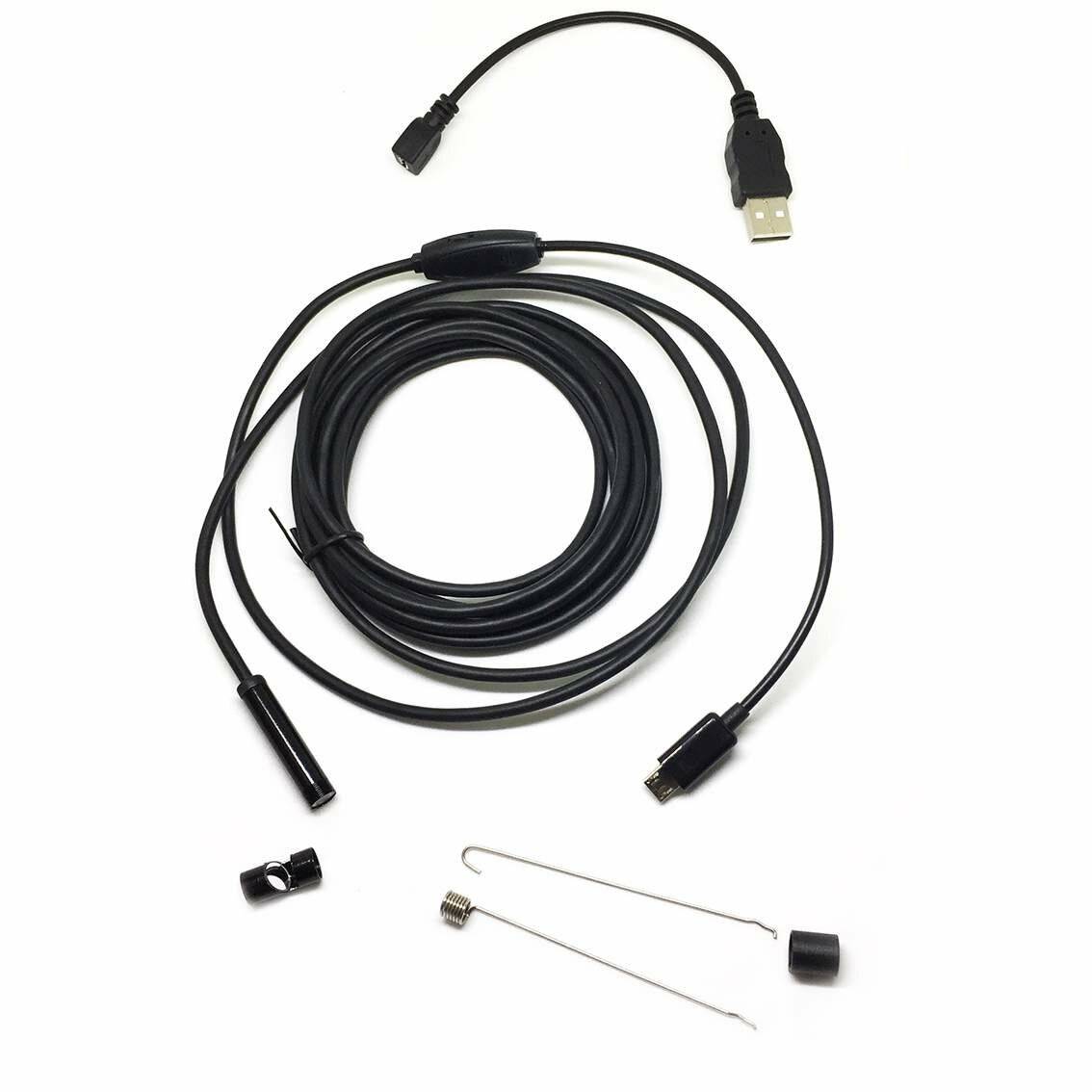 Очень простой эндоскоп поставляется во влагонепроницаемом корпусе, комплектуется зеркальцем, магнитом и крюком. Диаметр камеры в данной модели составляет 5,5 мм, длина шнура — 5 м. Устройство синхронизируется по USB не только со смартфоном, но и с планшетом или ноутбуком. Предоставляет четкое изображение при соблюдении фокусного расстояния в пределах 3-8 см.