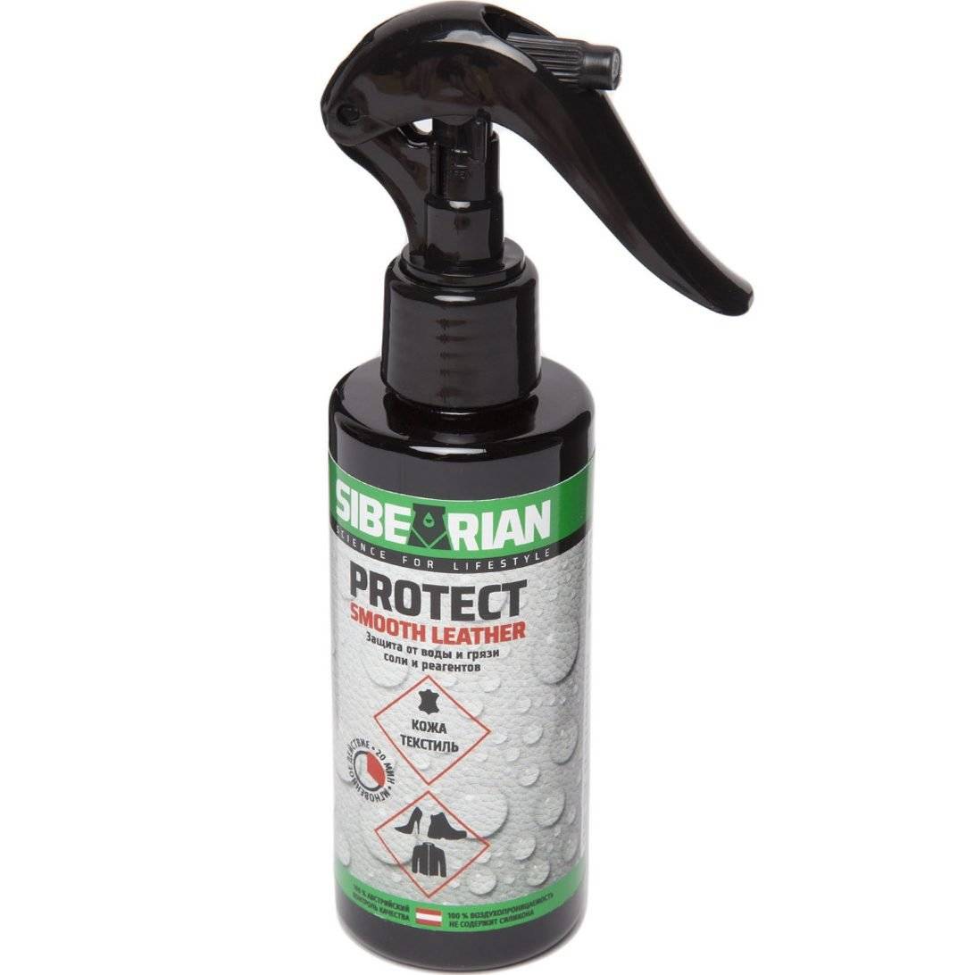 Siberian Protect представляет собой универсальное средство. Оно подходит для обработки замши, гладкой натуральной и искусственной кожи, нубука, текстиля и синтетики. Несмотря на демократичную стоимость, демонстрирует надежную защиту от проникновения внутрь материала грязи, влаги, пыли и химических реагентов. Инновационная полимерная формула способствует ультратонкому нанесению. Обволакивает каждую ворсинку и волокно, создавая отталкивающий нано-барьер на поверхности. В состав не входят силиконовые компоненты.