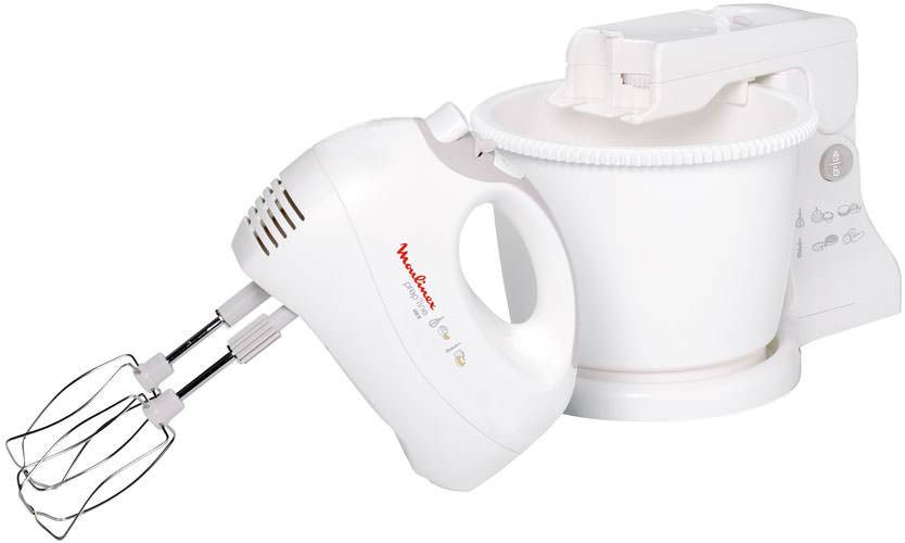 Миксер MOULINEX HM411110 станет хорошим помощником для вас. Мощность данной модели равна 450 Вт, что позволяет эффективно обрабатывать самые тяжелые типы продуктов.