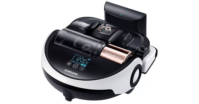 Samsung VR20H9050UW – экземпляр для сухой чистки. Быстро перемещается. Удобная функция «spot» – дистанционный пульт указывает лазером место уборки.