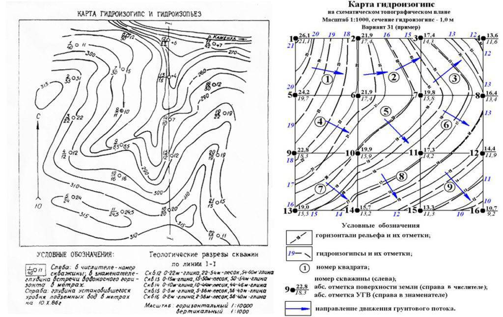 Хороший вариант – обратиться к карте гидроизогипс и гидроизопьез. Она есть в каждом муниципальном районе и составляется при проектировании жилого массива, дачных участков, деревни. Можно обратиться в отдел архитектуры, в сельсовет и запросить схему подземных вод.