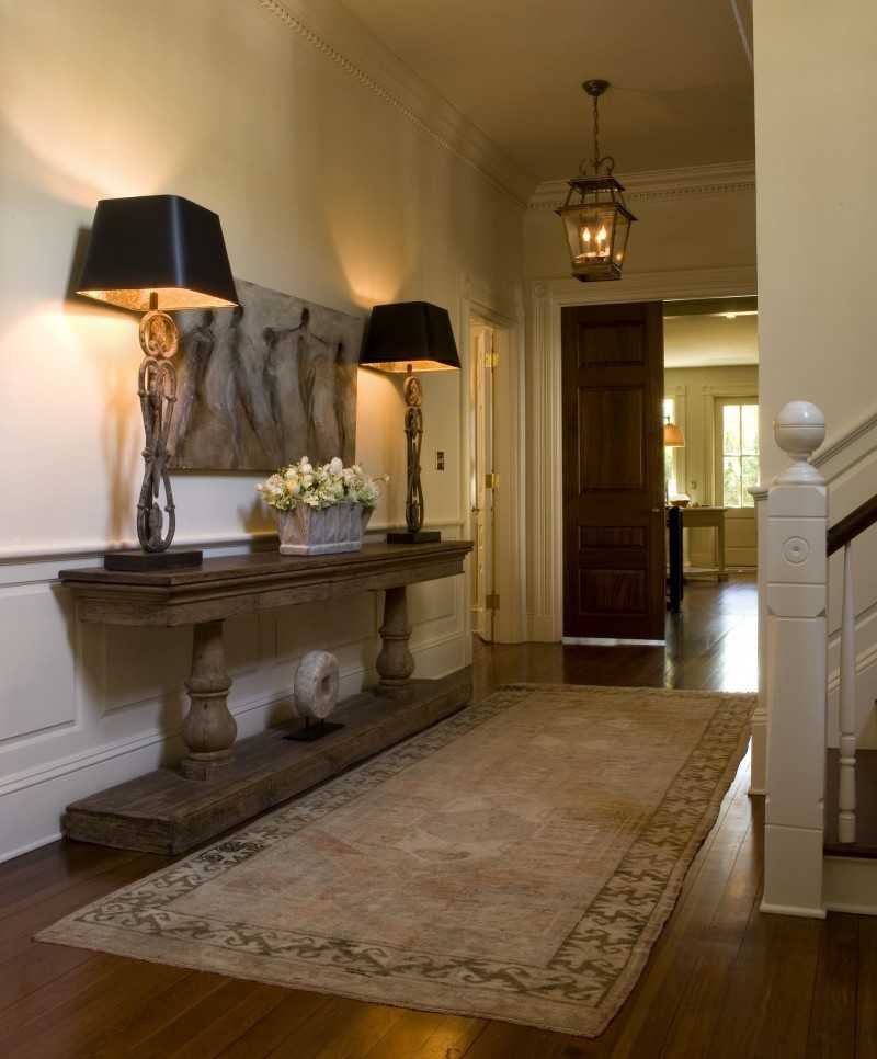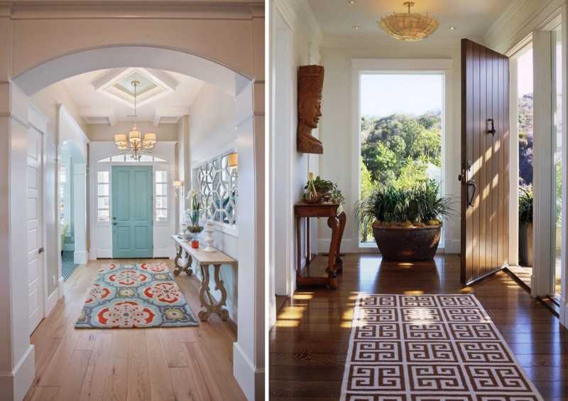 В прихожих целесообразно размещать ковры на прорезиненной основе. Они хорошо удерживают пыль и песок, попадающий с обуви, замечательно чистятся, хорошо смотрятся в интерьере, являясь аксессуаром декора.