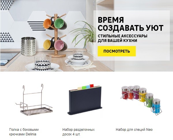 На сайте действует онлайн каталог, товары из которого можно заказать на дом по ценам гипермаркета. Дополнительно в торговой сети можно выбрать нужные товары, предназначенные для ремонта: