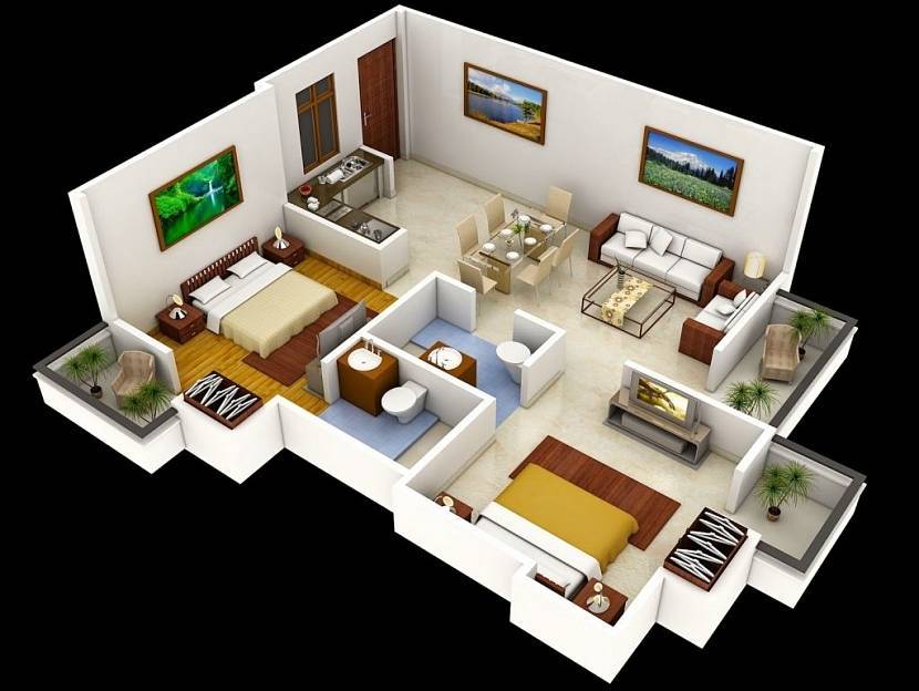 Планировка дома с двумя спальнямиИсточник roomester.ru