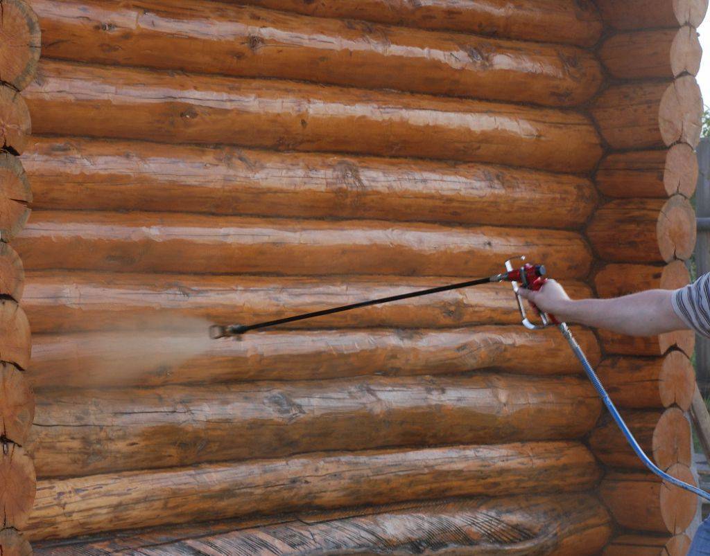 Следующий этап – грунтование. Грунтовку наносят кистью, тщательно обрабатывая все углубления, неровности, торцевые срезы бревен. Если дерево слишком быстро впитывает состав, рекомендуется наносить грунтовку в 2 слоя. После этого нужно дождаться полного высыхания поверхности и только потом приступать к основному процессу.