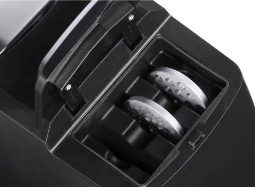 Если отдельная секция для насадок нужна для того, чтобы они не потерялись, то в ситуации с проводом дело не только в комфорте. Сматывание шнура в произвольном порядке приводит к заломам, перетираниям и его последующей замене. Бережное и безопасное хранение не только защищает от удара током, экономит деньги, но и продляет жизнь мясорубки.