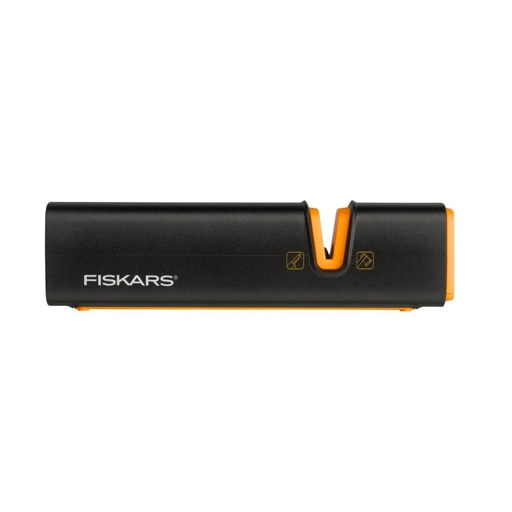 Модель имеет компактные габариты, небольшой вес, без проблем справляется не только с ножами, но и с ручным инструментом вроде топора. Снизу корпус оснащен специальной противоскользящей подкладкой для удобства и безопасности эксплуатации изделия. FISKARS Xsharp имеет универсальное назначение: подходит в том числе для керамики.