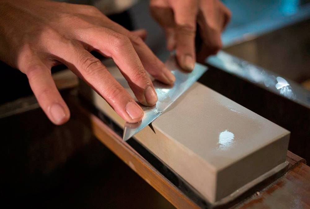 При заточке инструмента намокший слой образует консистенцию суспензии, а под ним создается новый абразивный слой. Такой способ позволяет оперативно заточить инструмент. Чтобы нож был острый, как бритва, стоит производить заточку от крупнозернистого абразива к мелкозернистому камню.