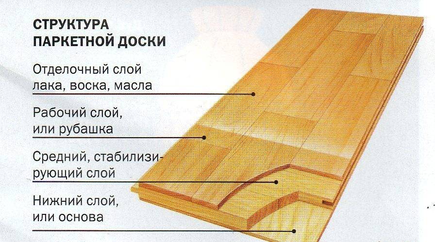 Подробное описание паркета и его видов – в том числе и паркетной доски – смотрите здесь. Суть покрытия – доска из натуральной древесины, состоящая из нескольких слоев.