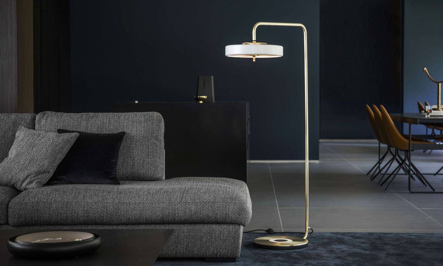 Если в комнате несколько зон отдыха (например, кресло и диван), не нужно выбирать для торшера постоянное место.