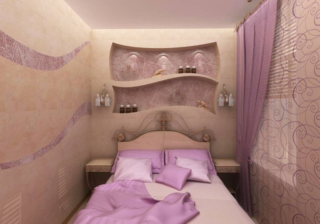 Чтобы создать уют в спальне, основной упор делался на драпировку и декоративные элементы. Дизайнеры рекомендуют выбирать текстиль, чтобы покрывала и занавески создавались из тканей разной фактуры, но одного цвета:
