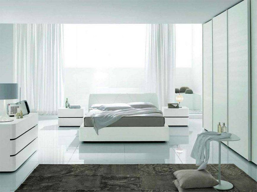 В такой спальне кровать оснащается удобными нишами или ящиками для хранения. Также она имеет подсветки, подъемные механизмы, складную конструкцию для трансформации или другие современные «фишки».