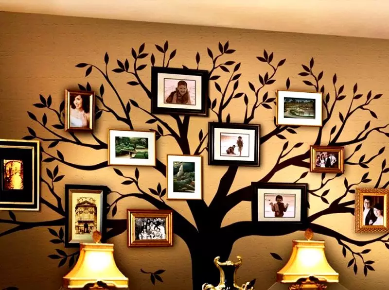 Удачное сочетание рисунка и фотографий в рамках
