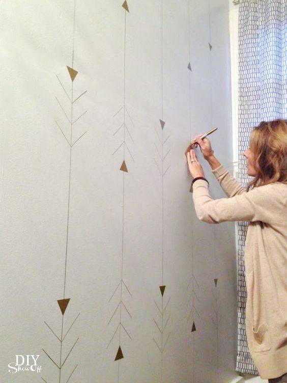 Для нанесения рисунка используется контрастный цвет. Чтобы такое оформление интерьера прослужило как можно дольше, для работы подбирают устойчивые к влажности краски и дополнительно покрывают стены водоотталкивающим покрытием – к примеру, акриловым лаком.