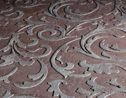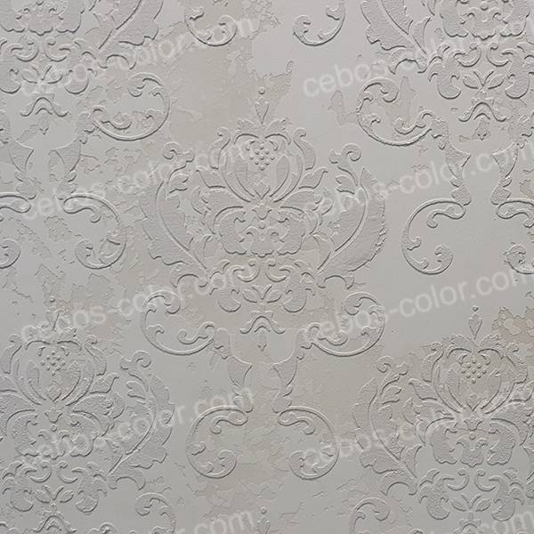 - Объёмные. Для создания объёмного рисунка используется шпаклёвка. Слой пластичного материала наносится по шаблону слоем в 1-3 мм. Объёмный рисунок выглядит необычно, рельефная поверхность притягивает взгляд. Когда трафарет высохнет, его можно сделать более выразительным, подкрасив выступающие детали.