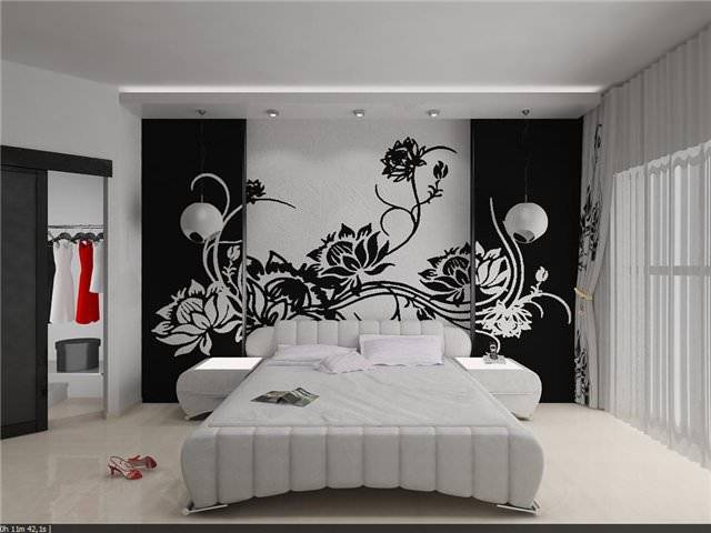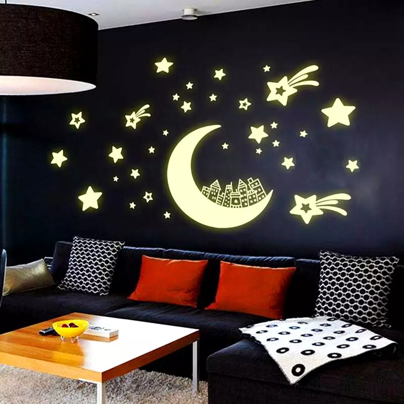 В спальной комнате можно использовать фосфорицирующие краски, в этом случае после выключения света комната примет совершенно фантастический вид