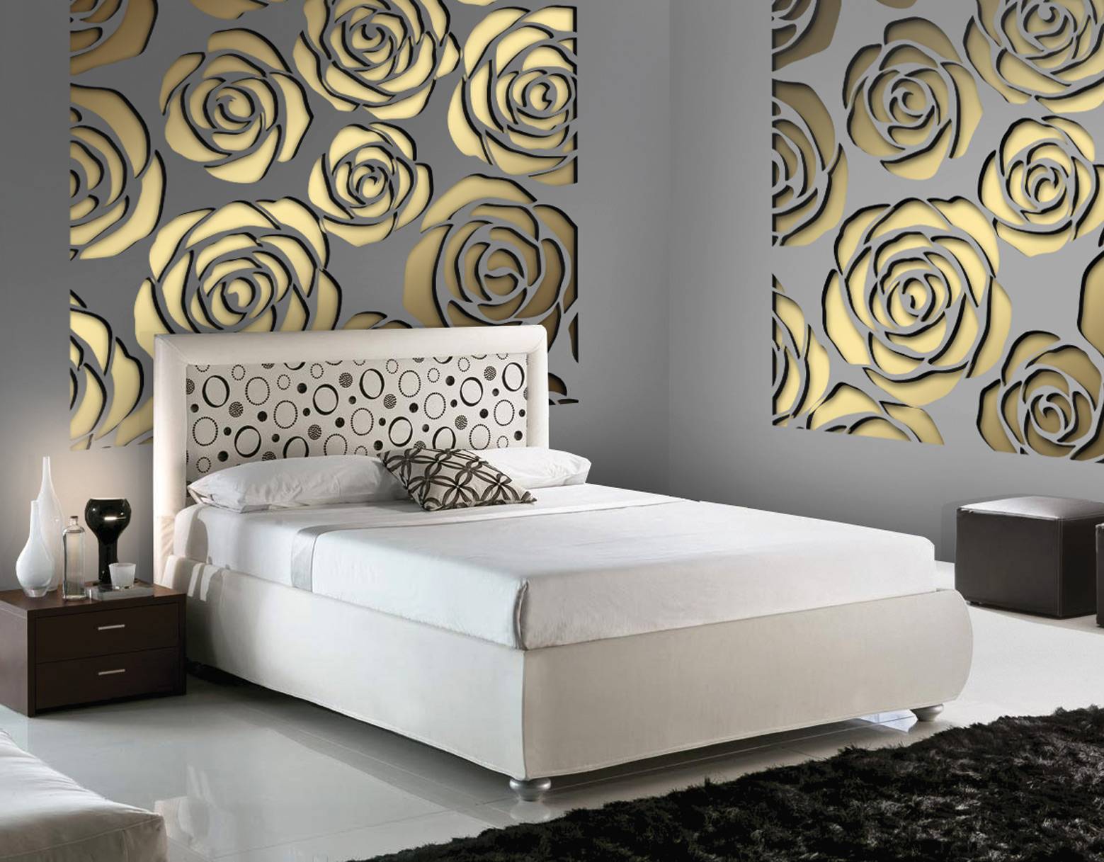Маленькие шаблоны хорошо подходят для украшения стен возле выключателей или розеток. Витыми узорами можно выделить зеркала, картины или фоторамки. Также красиво этот декор будет выглядеть в оформлении мебели, например, прикроватных тумбочек или книжных стенок.
