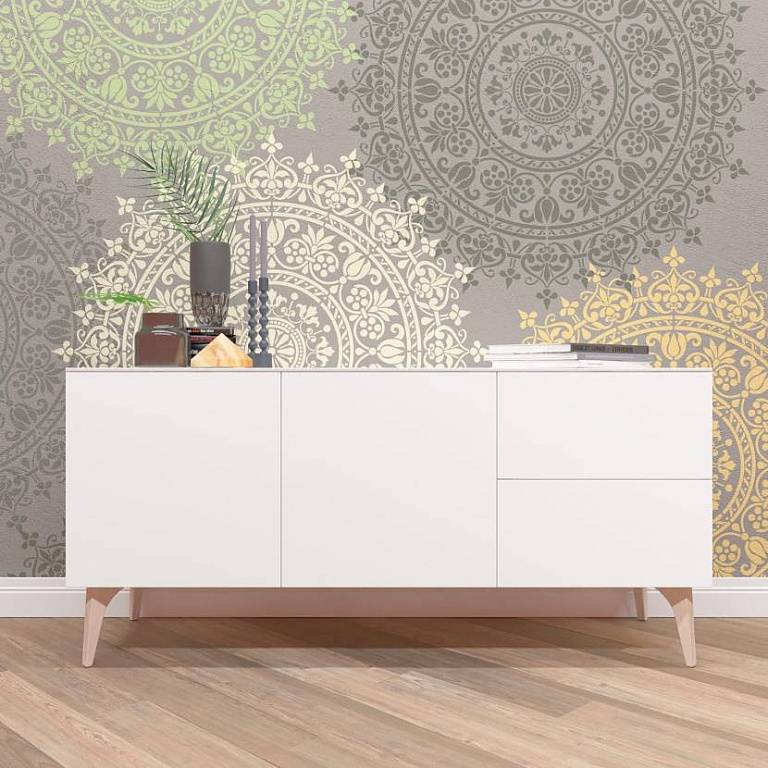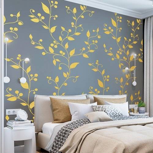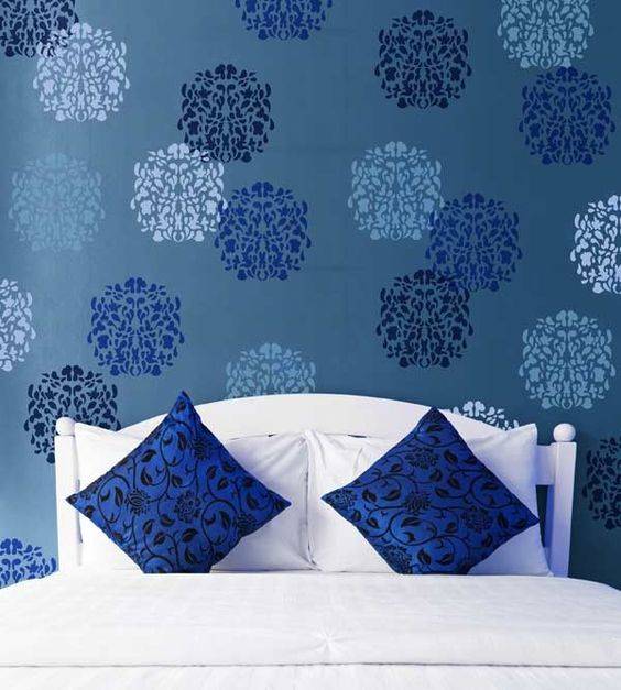 - следует избегать шаблонов с очень мелкими и частыми элементами. Вместо интересного решения можно получить одно сплошное расплывшееся пятно на стене. Красиво и интересно смотрятся орнаменты с большим количеством крупных линий и перемычек.