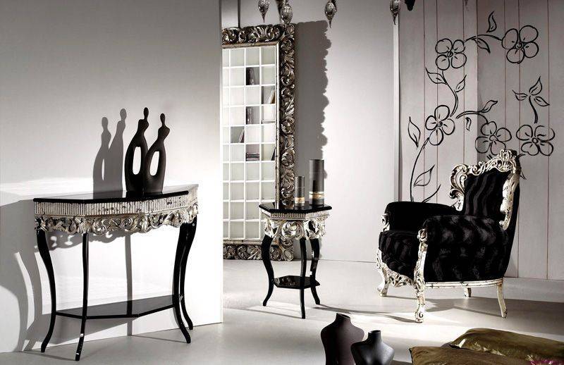 Рисунок в черно-белом интерьере