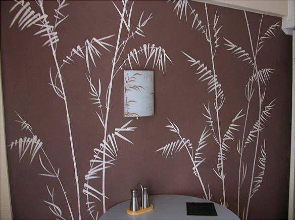 Рисунок при помощи трафарета, должен сочетаться с общим декором помещения