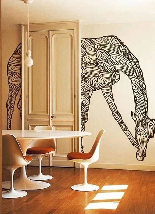 Обратные трафареты отличаются от всех остальных. Дело в том, что именно этот вид предполагает, что закрашиваться будет не внутренняя часть трафарета, а внешняя. То есть в результате на стене будет контур рисунка. Выглядит такое решение довольно интересно, поэтому его применяют во многих помещениях с современным дизайном.