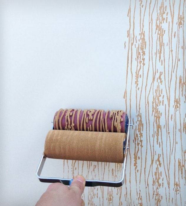 Сегодня очень популярны фактурные (трафаретные) валики, на поверхности которых находится какое-либо выпуклое изображение, во время покраски оно отпечатывается на поверхности стены. Такая разновидность валика подойдет, если всю стену или определенный ее участок нужно покрыть мелкими рисунками.